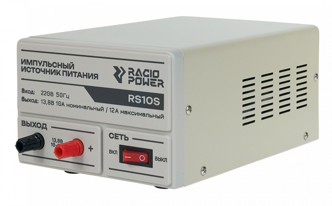 Импульсный источник питания Racio Power RS10S с низким уровнем пульсаций (Low Noice) специально спроектирован, чтобы минимизировать уровень побочных излучений в КВ и УКВ диапазонах и предназначен для питания радиостанций, а также различного радиооборудования с напряжением питания 13,8 В.