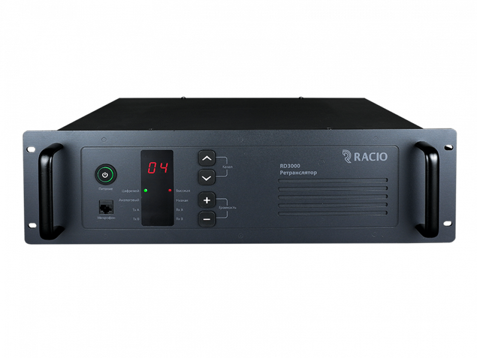 Профессиональный цифро-аналоговый ретранслятор Racio RD3000 – это эффективное средство для увеличения уверенной зоны покрытия портативных и автомобильных радиостанций, работающих в VHF (136-174 МГц) диапазоне. Поддержка стандартов DMR Tier I и DMR Tier II даёт большие возможности по шифрованию и маскировке переговоров от прослушивания. Ретранслятор имеет возможность установки в телекоммуникационную стойку (шкаф) 19" дюймов. Для этого на лицевой панели корпуса предусмотрены четыре крепежных отверстия. Размер корпуса ретранслятора: 3U (три юнита).